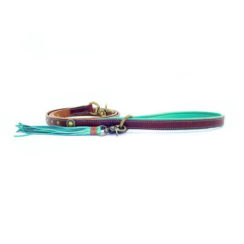 Geschmeidige und weiche Lederleine. Die Leine ist mit schönen Kupferdetails verziert. ZusĂ€tzlich wurde ein abnehmbarer AnhĂ€nger mit Fransen hinzugefĂŒgt. Der alte „gebrauchte“ Look ist Teil des Aussehens von Dog with a Mission!
